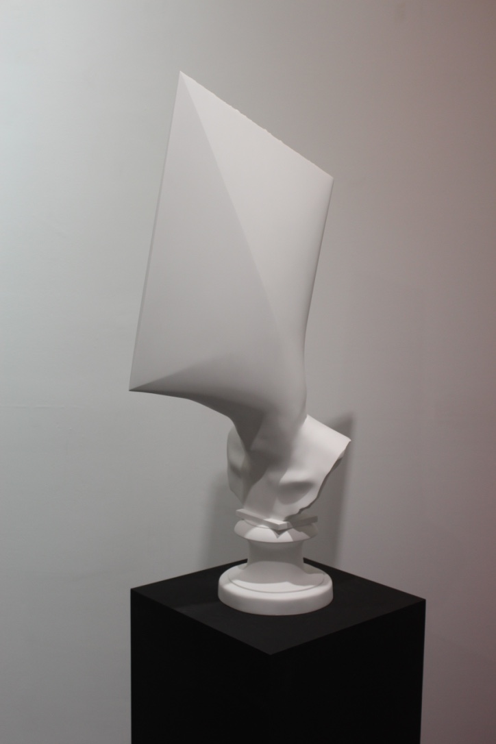 painted stone, stainless steel, pedestal.